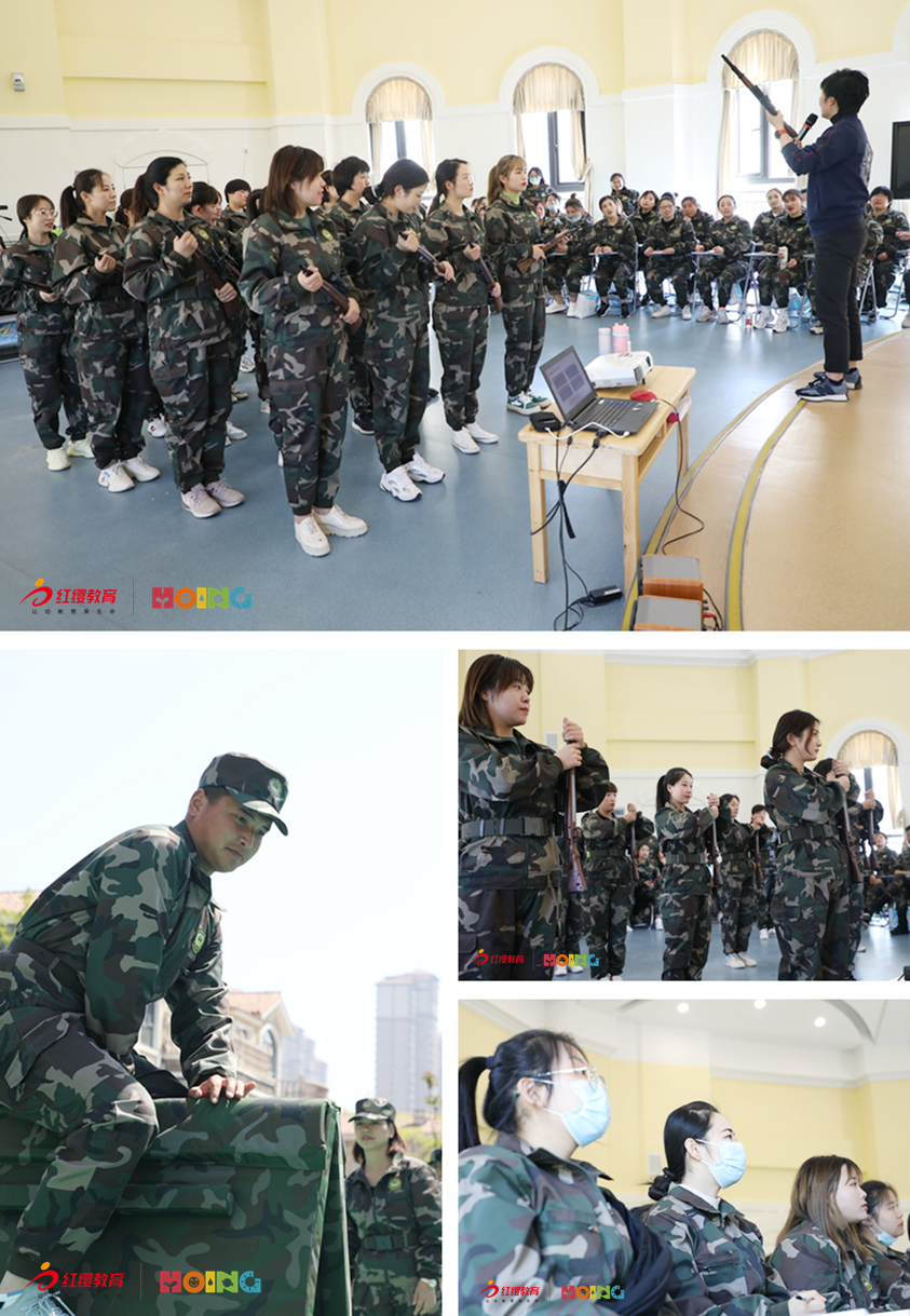 要想讓老師們真正教好《娃娃兵》,就要讓老師們親身體驗,深入瞭解。爲此在開營第一天,老師們身著(zhe)統一迷彩服,在教官的帶領下,進行瞭軍訓。一天的軍事化訓練激發老師們的愛國熱情,凝聚集體主義精神,增強國防觀念和組織紀律性,並(bìng)掌握基本軍事知識和技能。現場每一位老師們沒有抱怨,沒有叫苦,努力做到位每一個動作,感受軍營管理。隻爲瞭能更好地感受、學習,把《娃娃兵》項目帶回園所去,把愛我中華的種子埋入每個孩子的心靈深處。