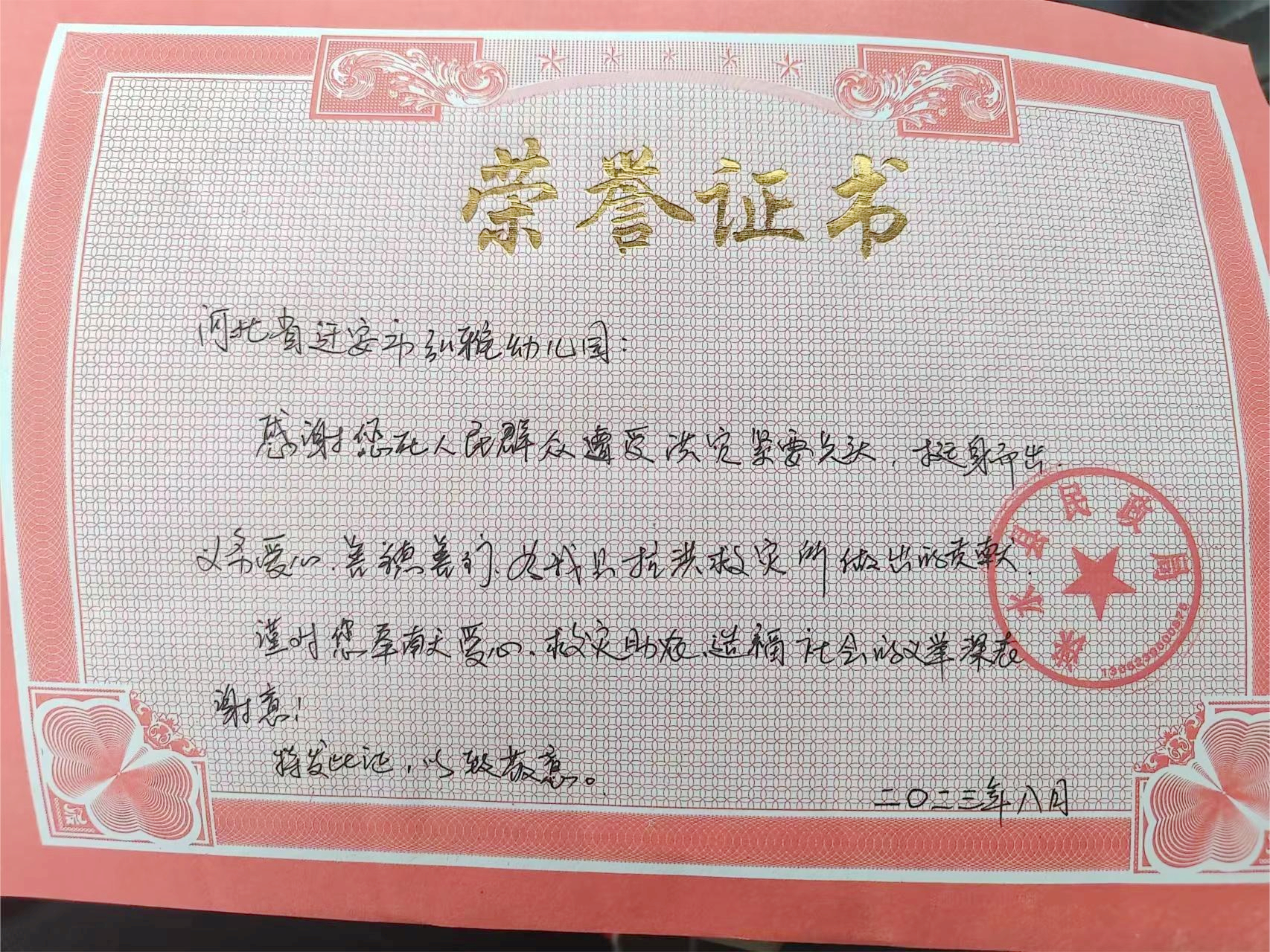 得知災情後,8月7日,北京Yojo河北省遷安市濱(bīn)河社區弘雅幼兒園在園長玄雅茹的帶領下,立即自發組織瞭(le)捐助行動,爲河北涞水縣受災群衆提供清潔的飲用水,和受災同胞們一起共度難關。
