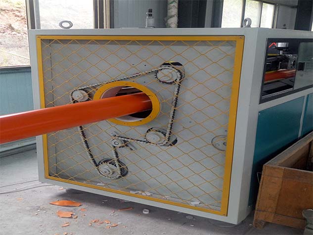 (5)牽引機用於(yú)連續、自動地将已冷卻變(biàn)硬的管材從機頭處引出來,變(biàn)頻調速。