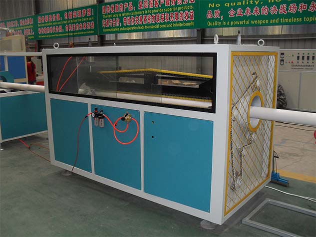 (4)定型水箱用於(yú)管材的定型、冷卻, 真空定型水箱上裝有供定型和冷卻的真空系統和水循環系統,不鏽鋼箱體,循環水噴淋冷卻, 真空定型水箱上裝有前後移動裝置和左右、高低調(diào)節手動裝置。